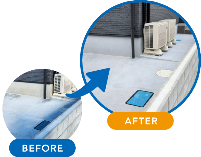 私たちは『不純物を根こそぎ落とす洗浄』から始めます。このひと手間が塗料の密着力を極限まで高め、数年後の剥がれやカビの再発を防ぎ、住まいの美しさと耐久性に圧倒的な差をつけます。